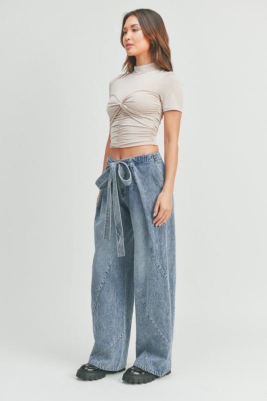 Bow-Knot Tie Casual Denim Pants