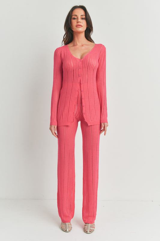 Button Down Cardigan and Pajama Lounge Pants - 2 Piece Set