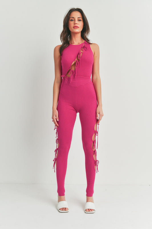 Sleeveless Cut Out Bodysuits and Ribbed Leggings - 2 Piece Set