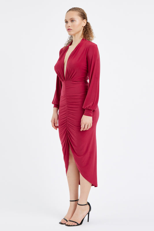 Deep V-Neck Ruched Long Dress