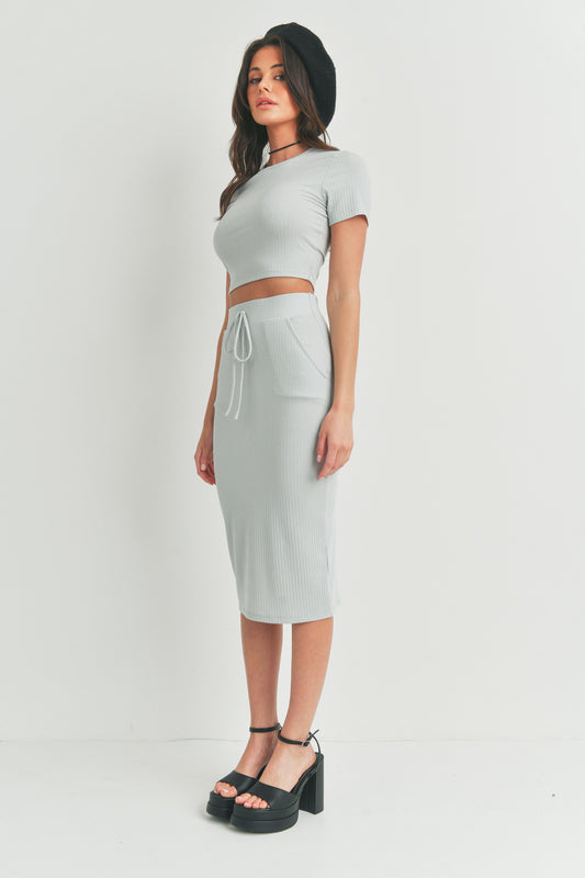 Short Sleeve Crop Top and Midi Skirt - 2 Piece Set