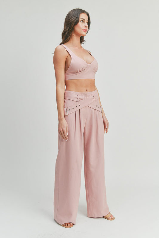 Sleeveless Crop Tank Top and Wide Leg Pants - 2 Piece Set