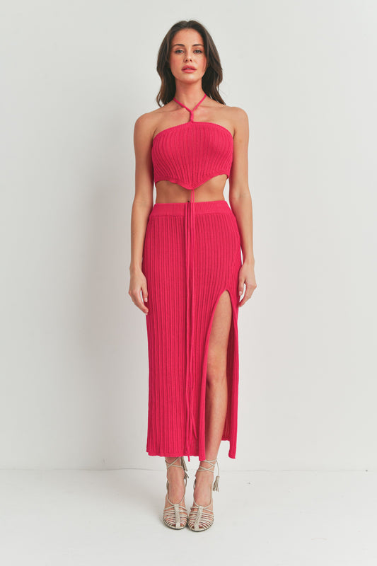 Sleeveless Crop Tube Top and Maxi Slit Skirt - 2 Piece Set
