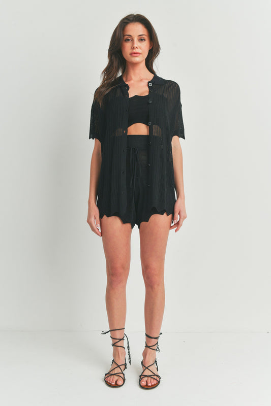 Sheer Cardigan, Bra Top and Shorts - 3 Piece Set