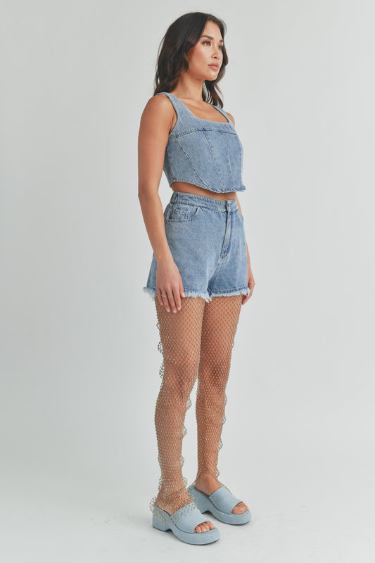 Sleeveless Denim Top and Shorts - 2 Piece Set
