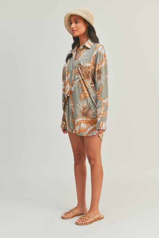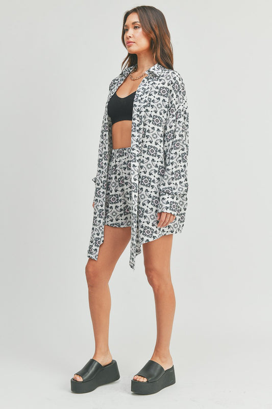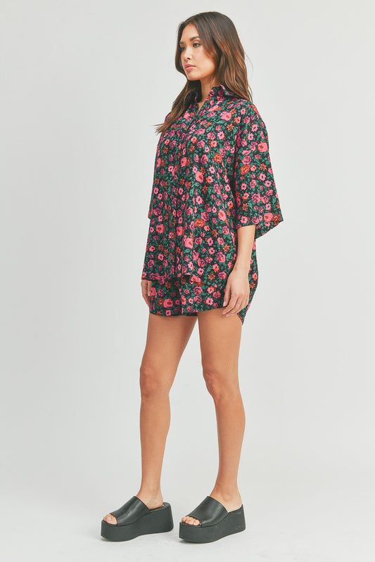 Floral Long Sleeve Shirt and Pajama Shorts - 2 Piece Set