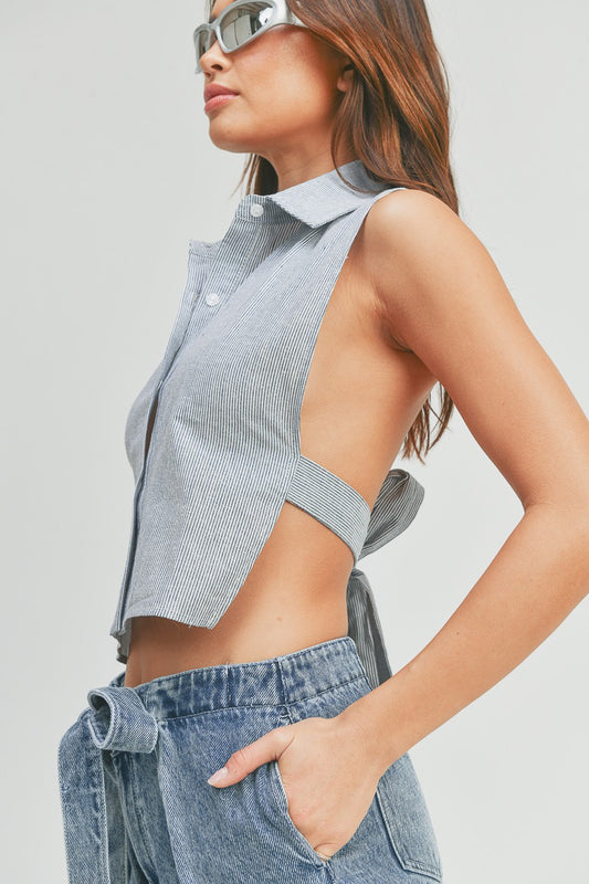 Cropped Shirt, Bra Top and Shorts - 3 Piece Set