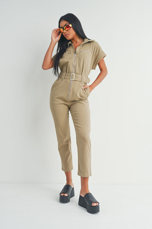 Short Sleeve Zipper Shirt and Pants - Jumpsuit